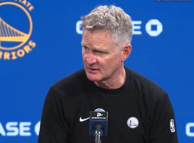 北京时间11月27日,在NBA杯的比赛中,金州勇士队在主场以100-104不敌休斯顿火箭队。赛后,勇士主帅科尔出席了发布会。