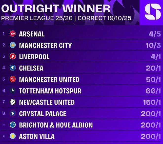 而本场“双红会”结束后,相关机构也更新了英超最新夺冠赔率,阿森纳在英超3连胜并且3分领跑后,以5赔4的赔率成为最大的夺冠热门。