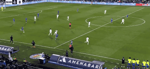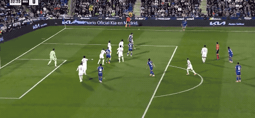 第22分钟,赫塔费终于大举压上,短短1秒钟的时间,两人倒在了皇马的禁区内,裁判示意没有犯规。