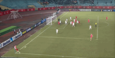 第76分钟,莱奥横敲,方昊解围击中毛克折射入网,河内1-1国安。
